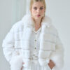 Capa en lonjas, cuello mao, piel natural y sujecion frontal mediante ganchos peleteros.