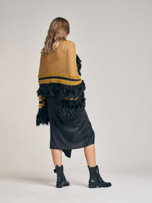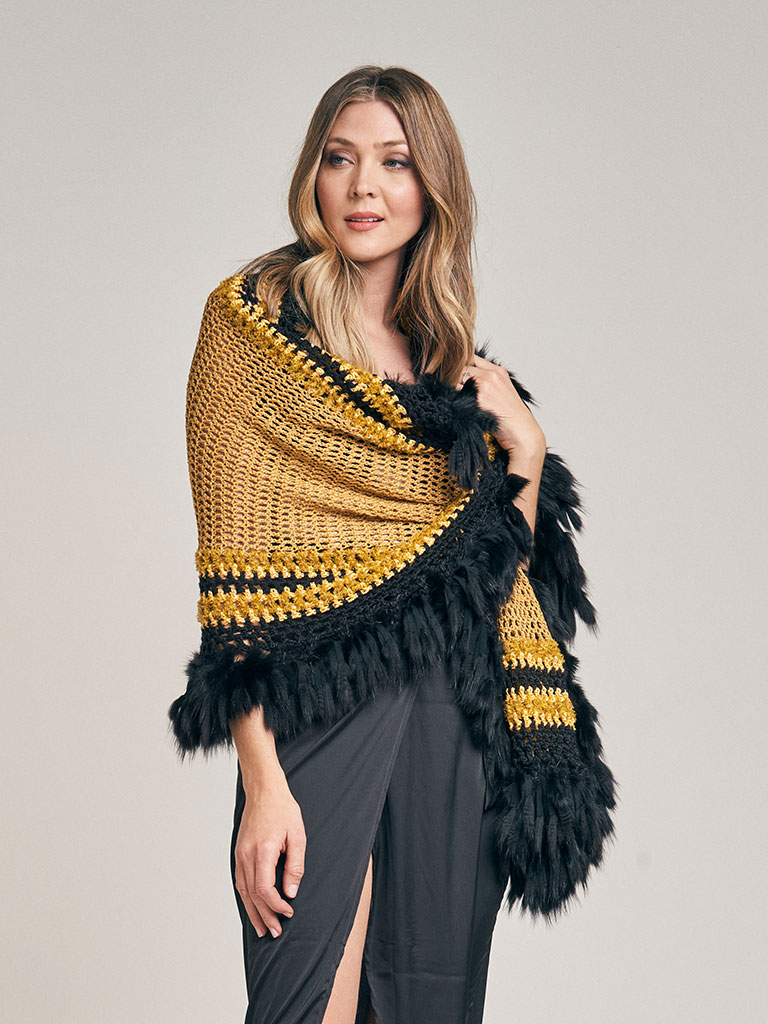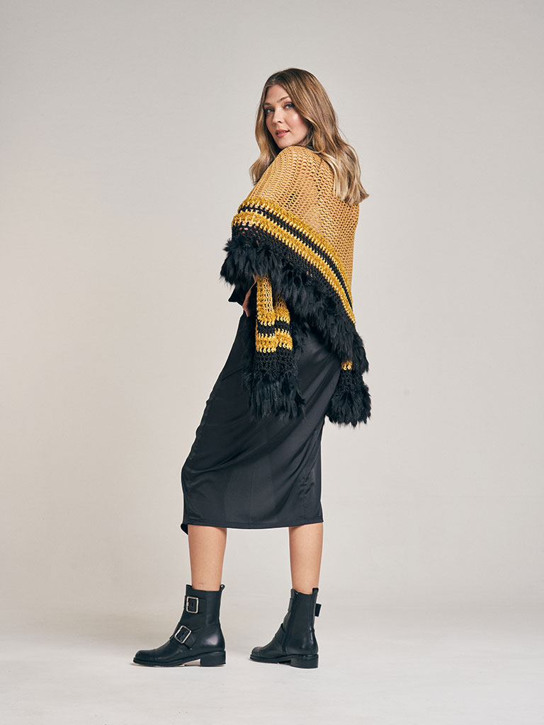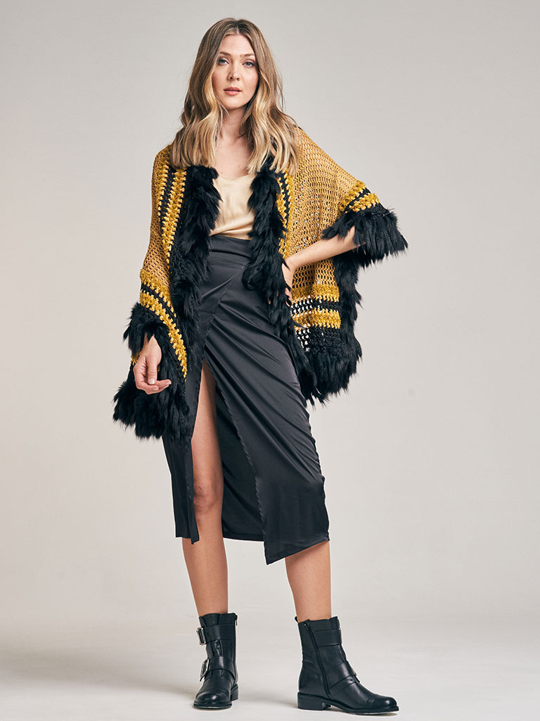 Shawl tejido a mano con flecos de conejo de 5 cm todo alrededor. Largo 1,62 mts + flecos, ancho 62 cm + flecos. Pieza única, de colección.