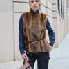 Chaleco de gamulamb, aspecto gamuzado con abrigo interno, costadillos abiertos, enviabado en cuero al tono y herrajes niquelados.