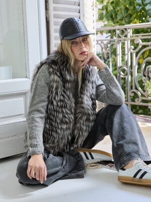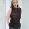 Chaleco reversible, cuero ovino con interno de piel. Abrocha al frente con ganchos peletero.