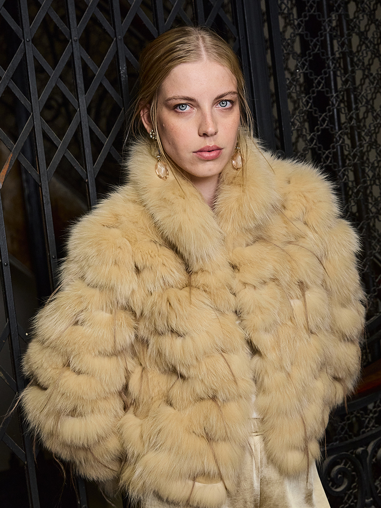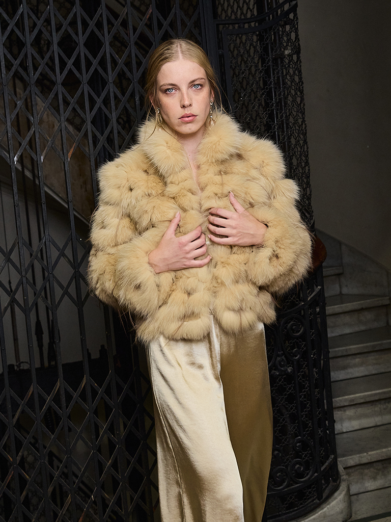 Chaqueta de piel natural trabajada con cuero ovino. Disponible en camel, negro y blanco. Estela es el abrigo ideal para destacar.